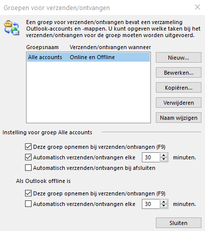 Klik op verzenden en ontvangen en vervolgens op alle accounts.